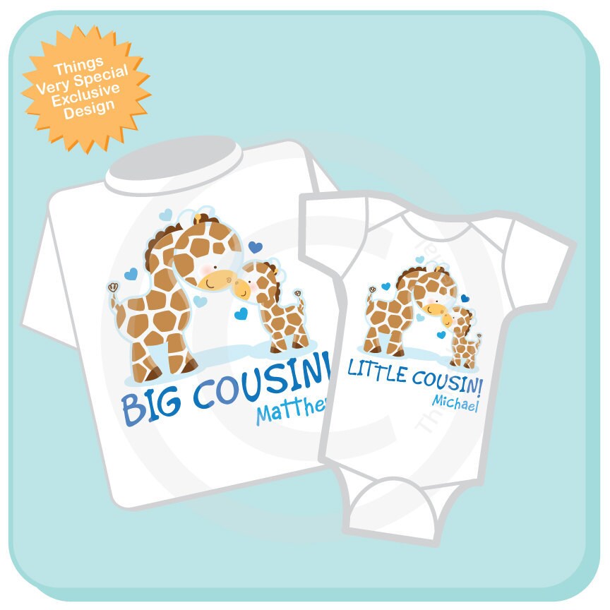 Set of Two Personalized Big Cousin and little cousin onesie