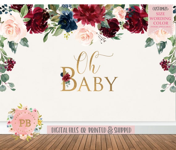 Floral Baby Shower Backdrop, Oh Baby fancy baby shower decorations
