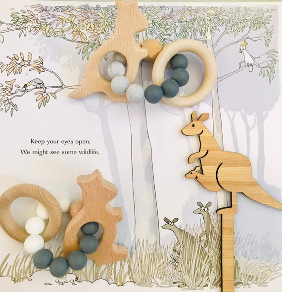 the Kangaroo Minnie Mizzie Rubber Teether kangaroo teether
