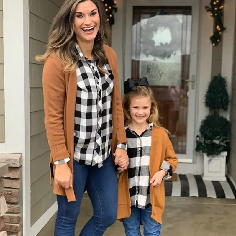 Mother Daughter Baby Clothes Family mom and son matching plaid shirts