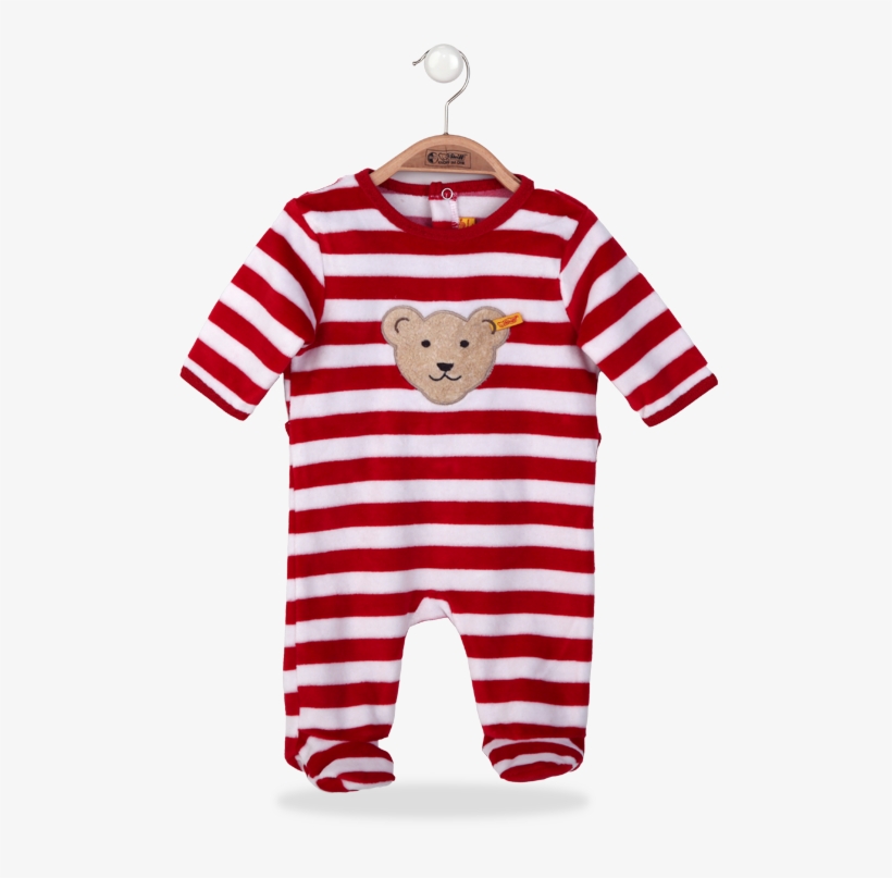 Steiff Red And White Striped Velour red velour baby grow