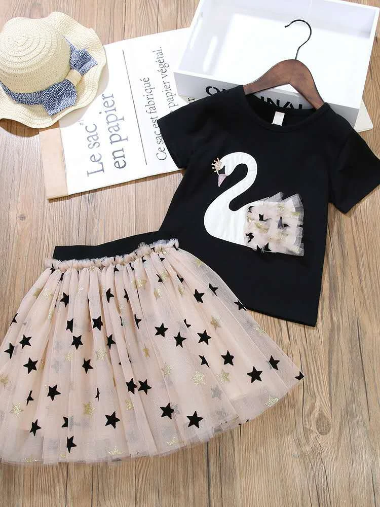 Baby Girl Clothes 2PCS Round Neck Short swan baby girl clothes