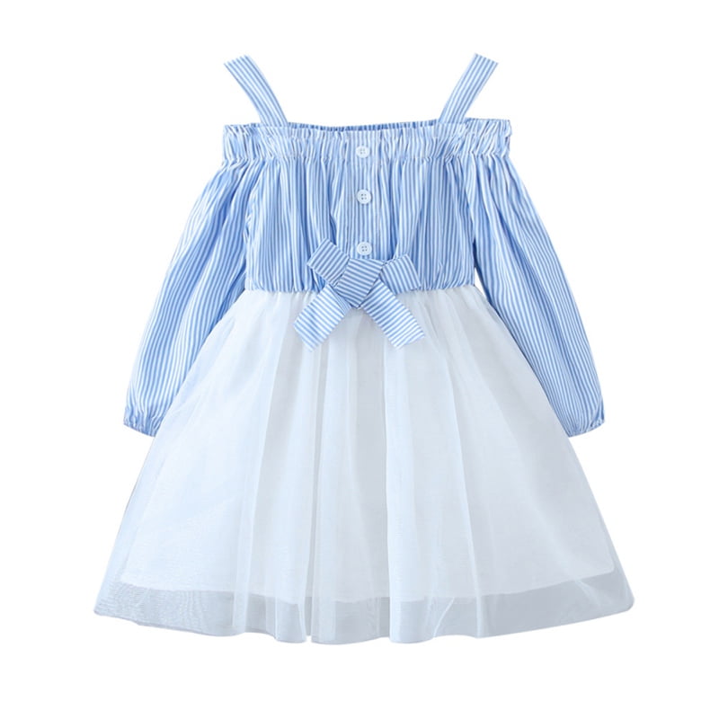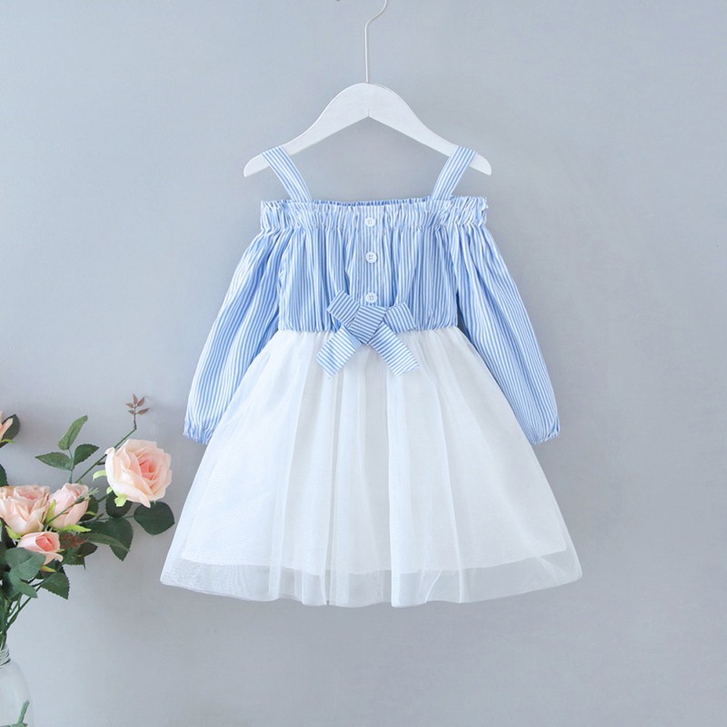 Autumn Casual Baby Girls Striped Ribbon baby girl net dresses