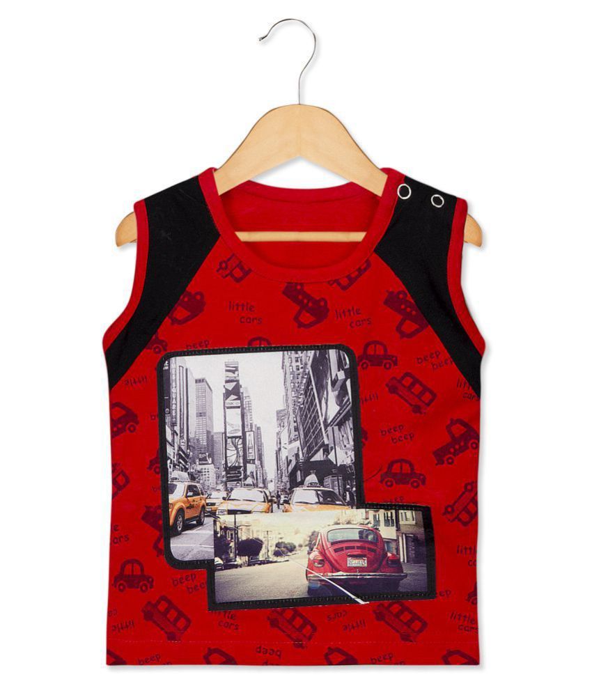 Pure Hugs Baby Boy's Red Cotton sleeveless t shirt for baby boy