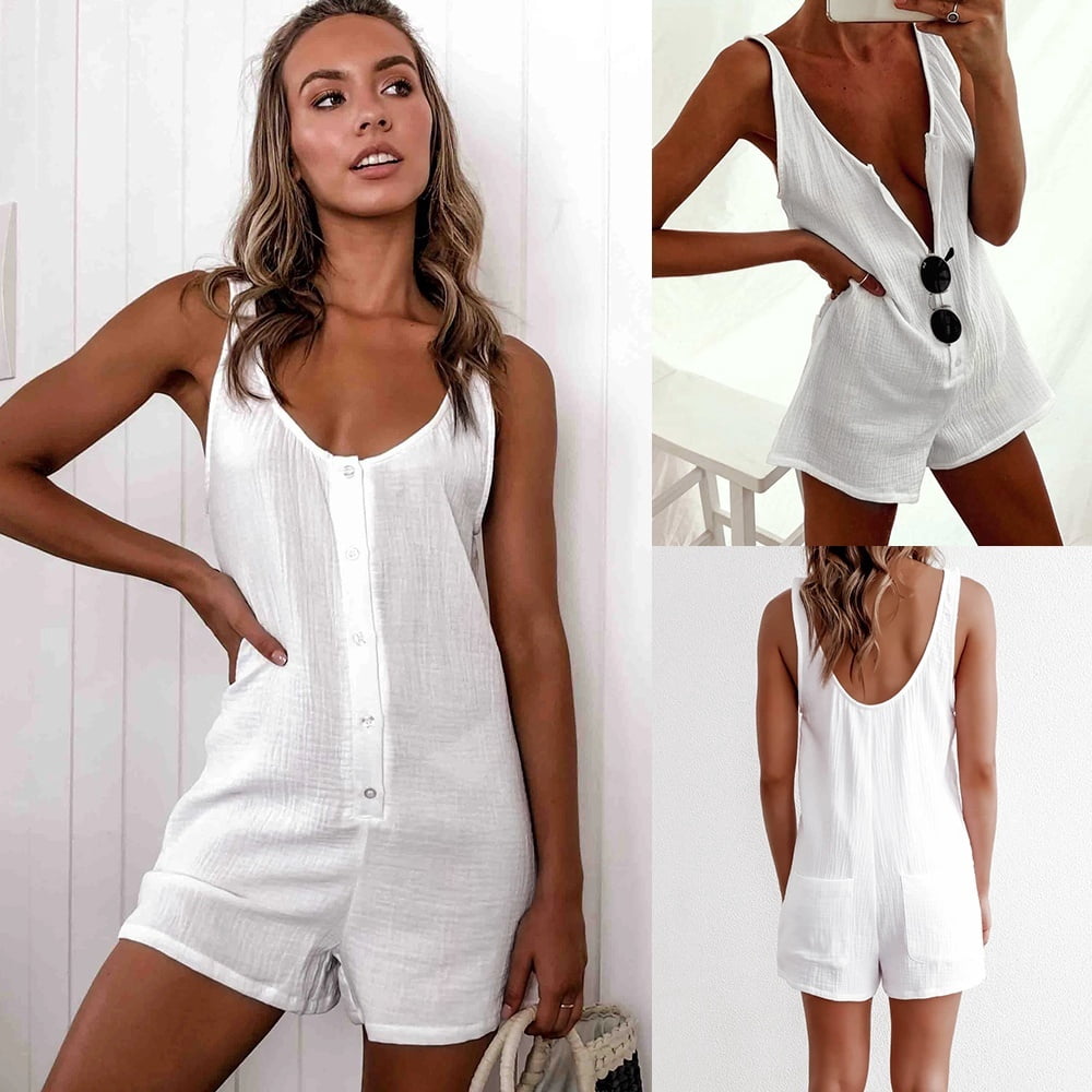 Hot Women V Neck Button Vest Style romper vest