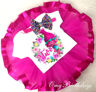 Trolls Poppy Pink Tutu Shirt Headband trolls first birthday outfit