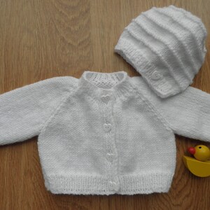 Cream baby cardigan and hat handknitted newborn baby jumper