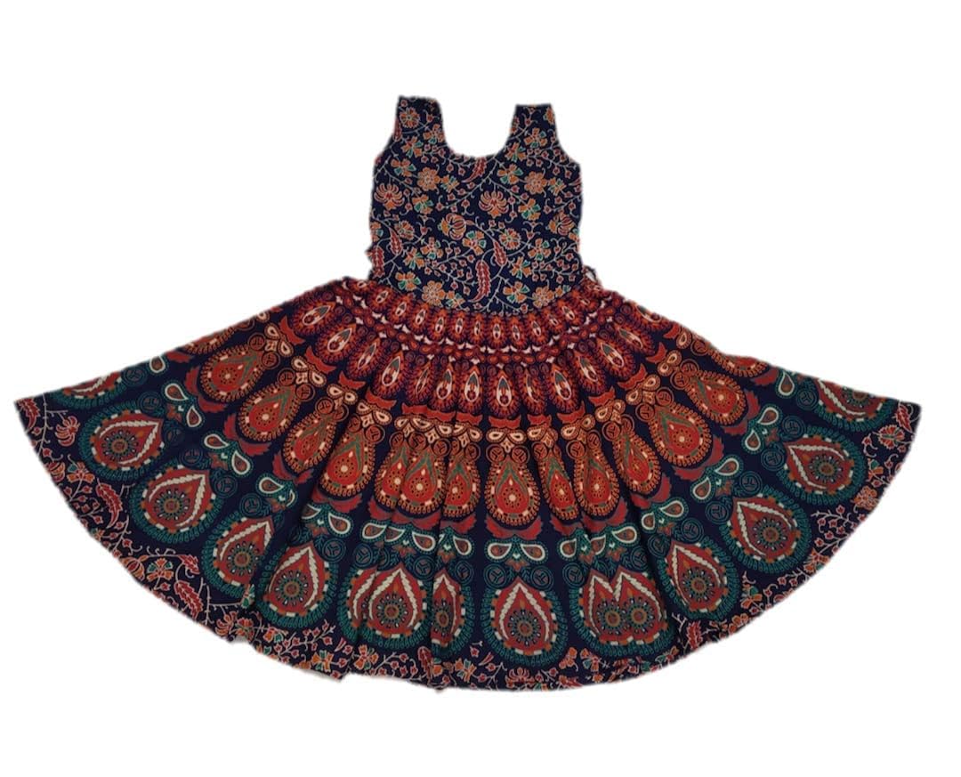 Cotton Jaipuri Midi Frock Dress (Blue cotton frocks for 7 years old girl