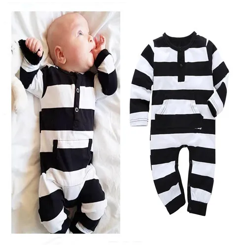 Baby Girl Boy Romper Long Sleeve Cotton black and white striped baby romper