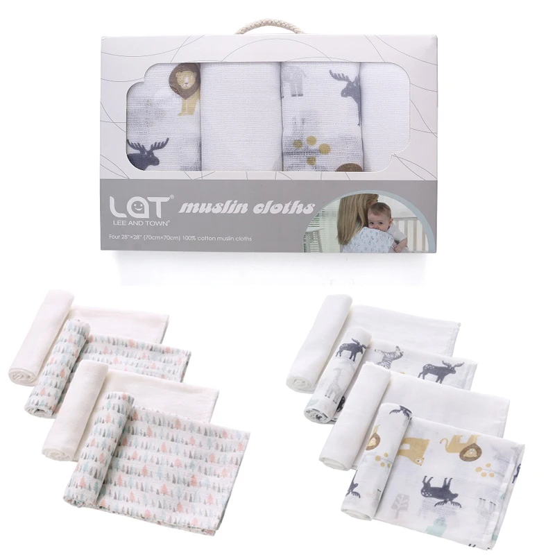 4 Pack Baby Diapers Gauze Muslin Square nappies and wipes