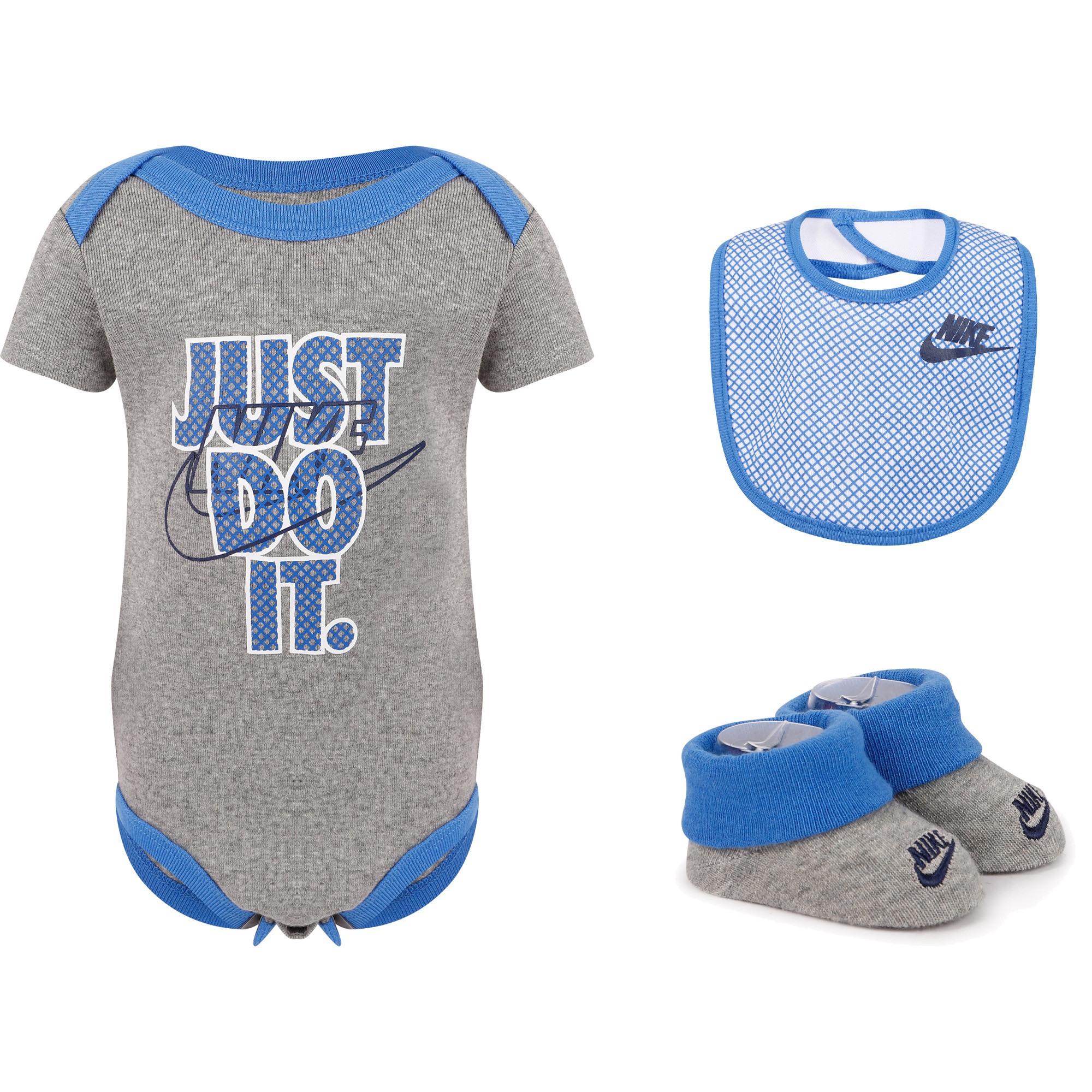 Nike Onesie, Slippers and Bib Set in grey nike onesie
