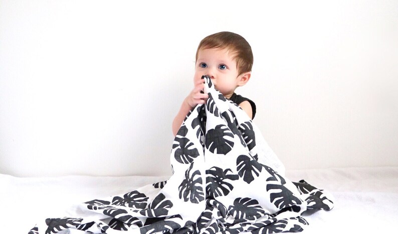Organic Muslin Swaddle Blanket in Palm organic muslin blanket