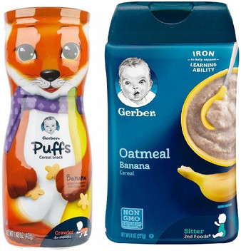 Gerber Cereal \u0026 Puffs Combo (Pack of 2 banana puffs cereal