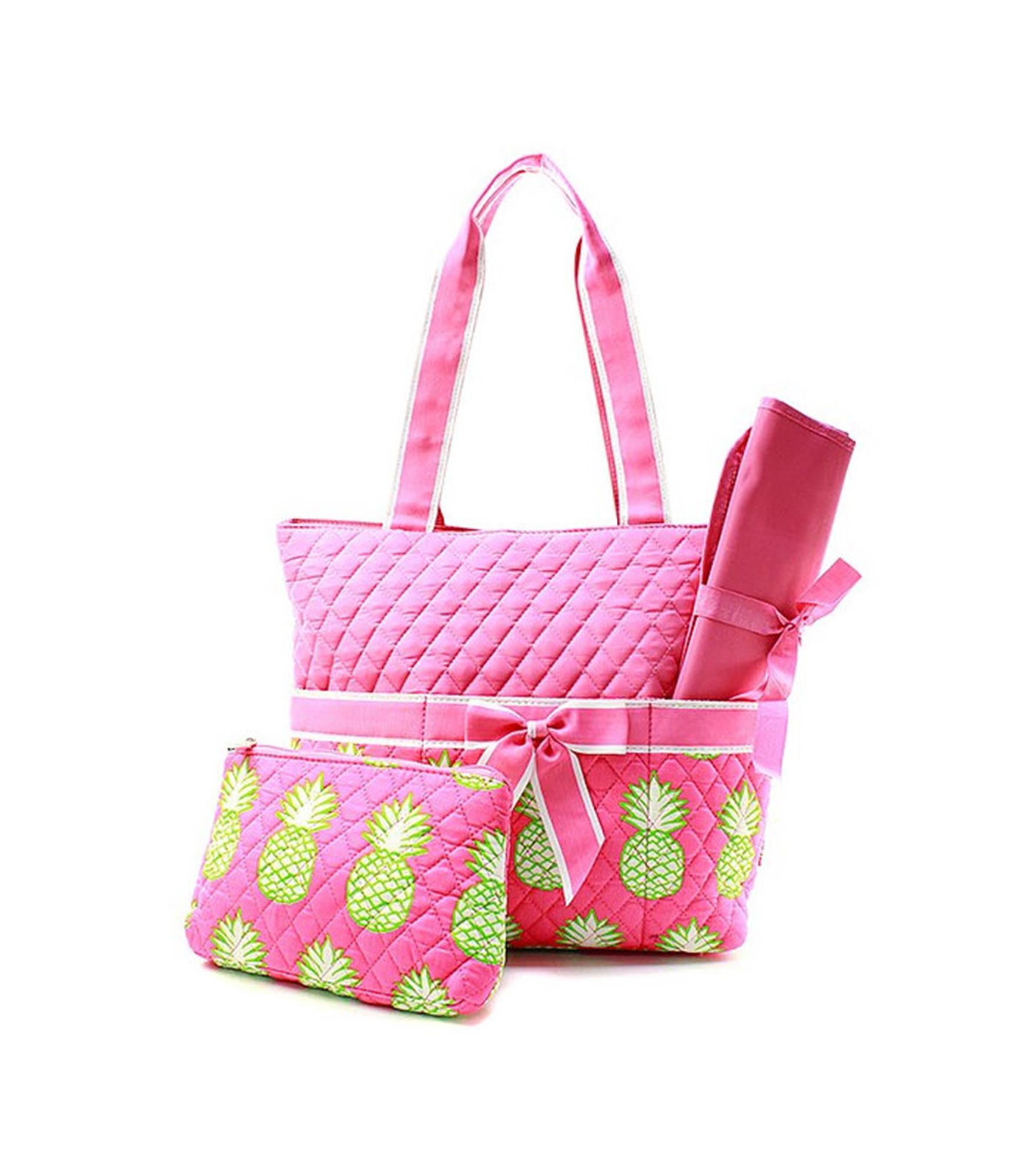 Quilted Diaper Bag 3-Piece Set pineapple diaper bag