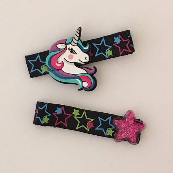 Unicorn \u0026 Star Barrette Set Black baby barrettes for black hair