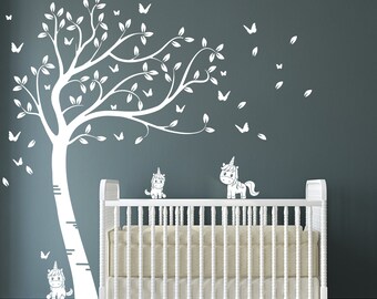 Grey birds and Orange leaves, Tree wall nursery wall stickers next