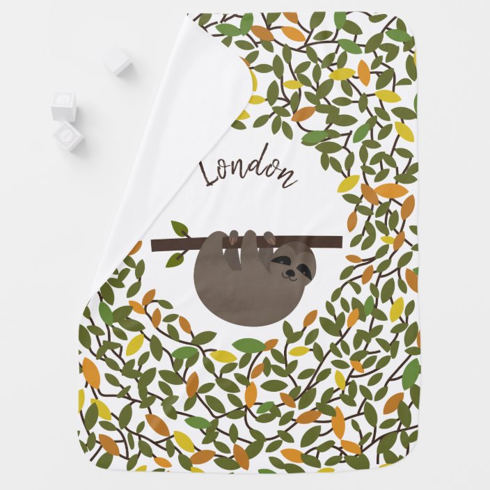 Baby Sloth Autumn Greenery Personalized personalized sloth baby blanket
