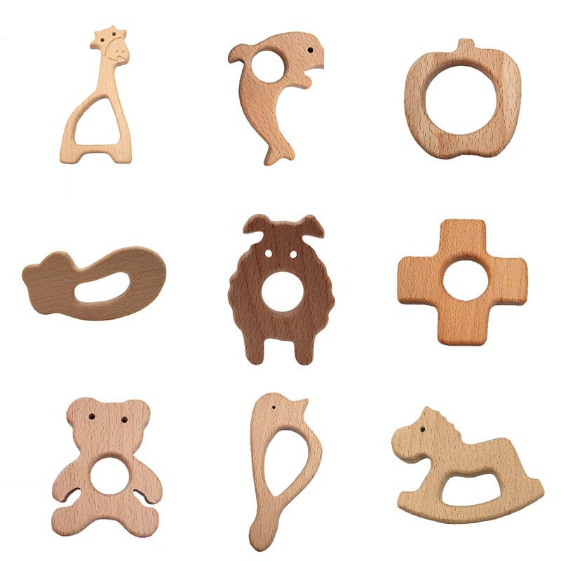 2020 DIY Baby Teether Toys Wooden wooden animal teether
