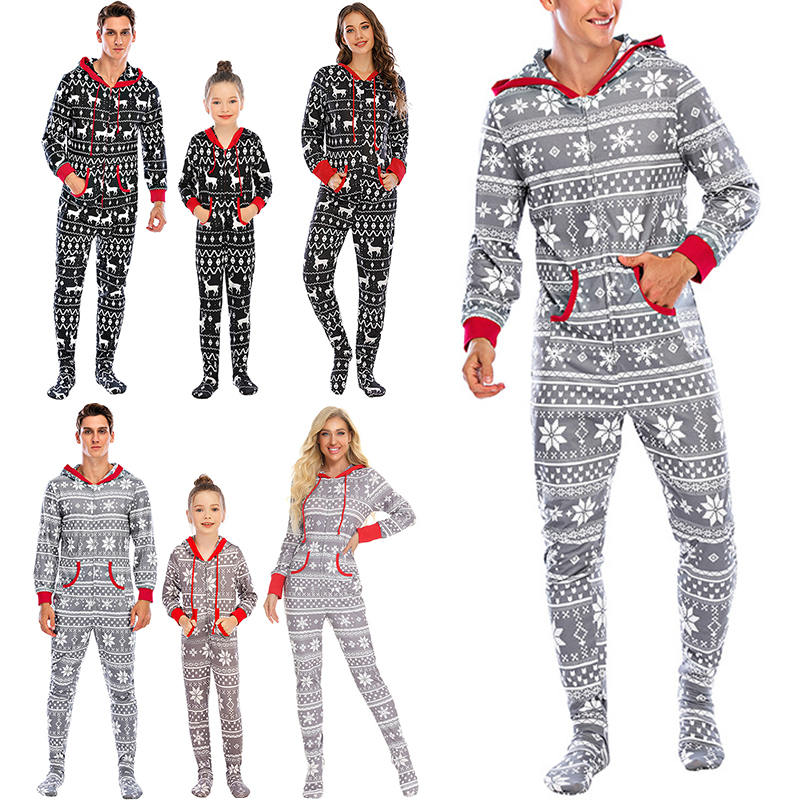Family Matching Xmas Hoodie Pajamas Set baby zipper pajamas