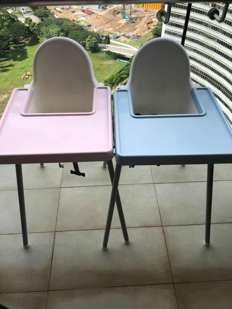 Ikea High Chair blue and pink, Babies ikea high chair blue