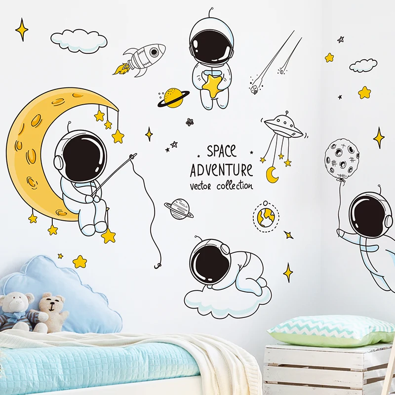 Cartoon Astronaut Wall Stickers DIY outer space baby room decor
