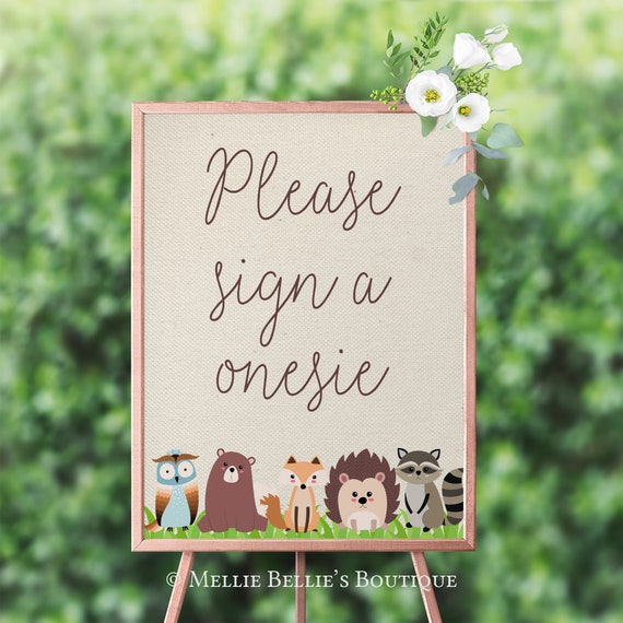 Printable Baby Shower Sign, Please Sign woodland onesie