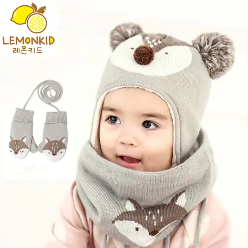 Lemonkid 3Pcs/Lot Baby Winter Hat Scarf baby winter hat and gloves