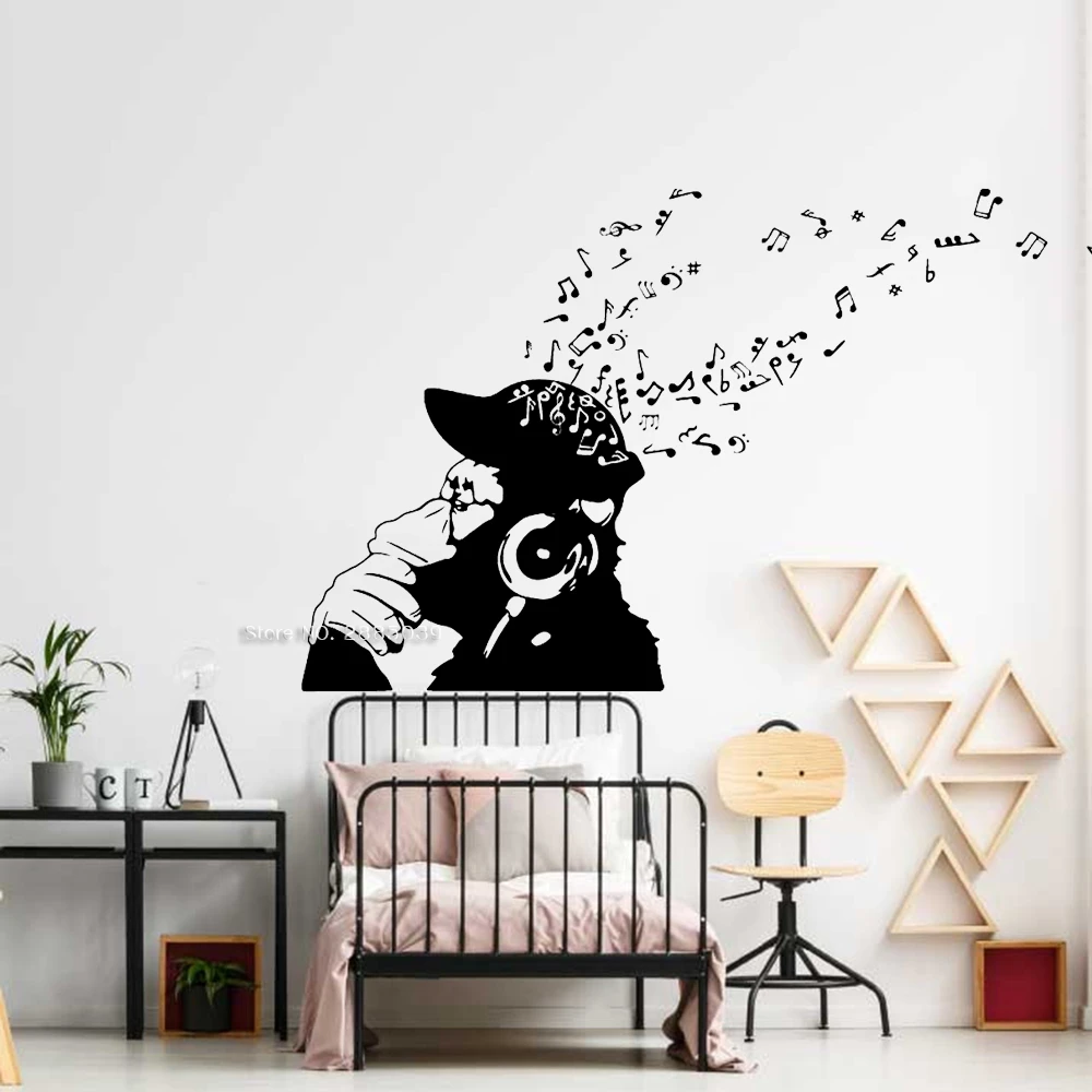 Monkey Chimp Listen to Music Vinyl Wall monkey wall decals