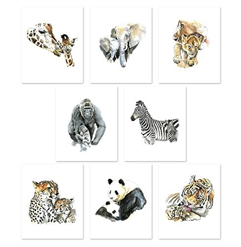 Set of 8 Mom and Baby Animal Prints wildlife nursery theme