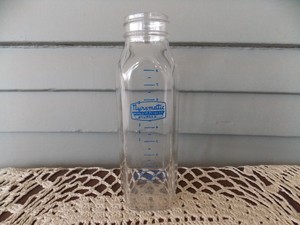 vintage glass baby bottles, lot of four 8 oz glass baby bottles