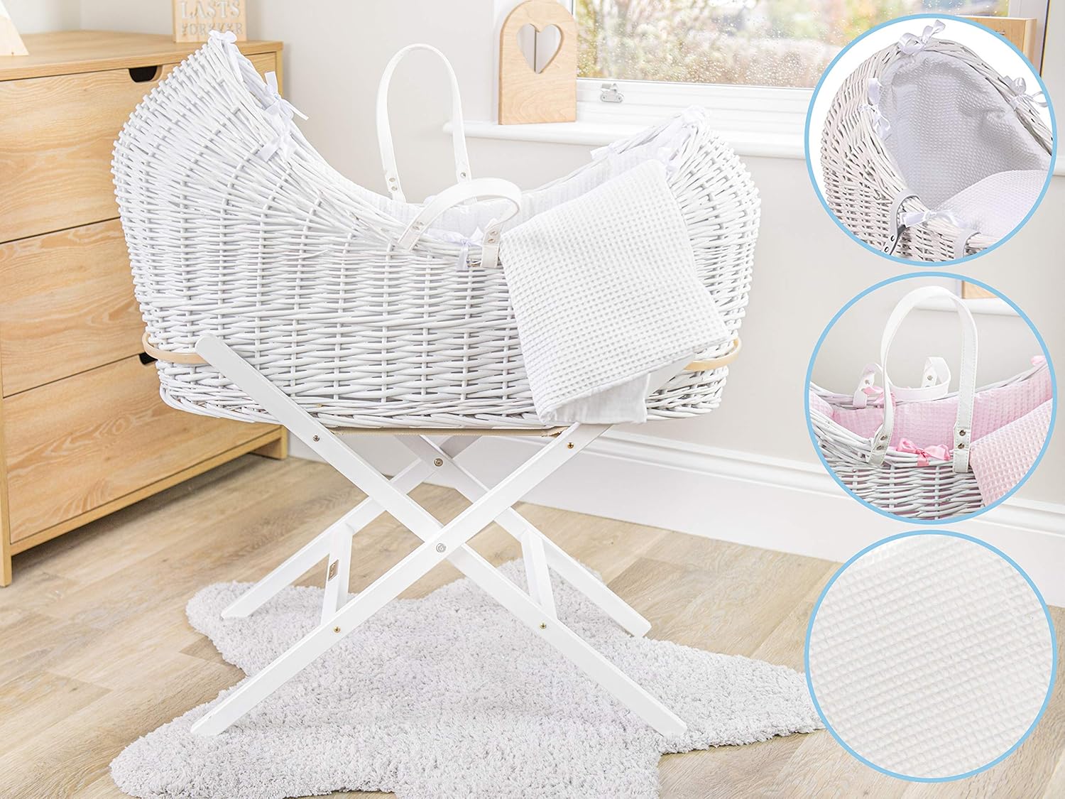 Clair de Lune Waffle White Wicker Noah white noah pod moses basket