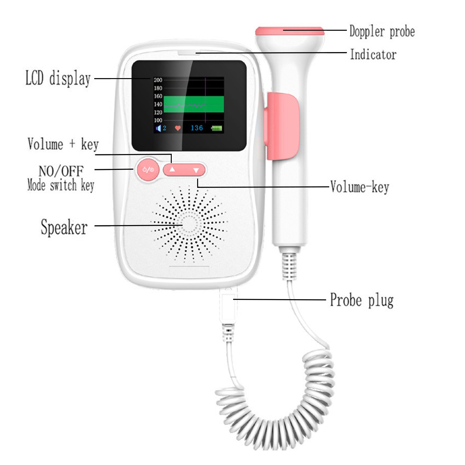 Bluetooth LCD Fetal Doppler Meter Baby target baby doppler