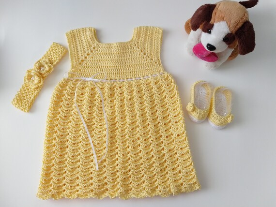 Yellow Crochet Baby Dress Set Newborn yellow newborn dress