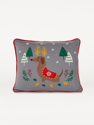 Multi Christmas Sausage Dog Print asda baby cushion