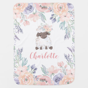 Pink Purple Floral Lamb Personalized personalized lamb blanket