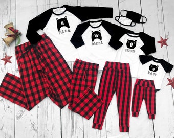 Bear Family Buffalo Plaid Christmas newborn buffalo plaid pajamas