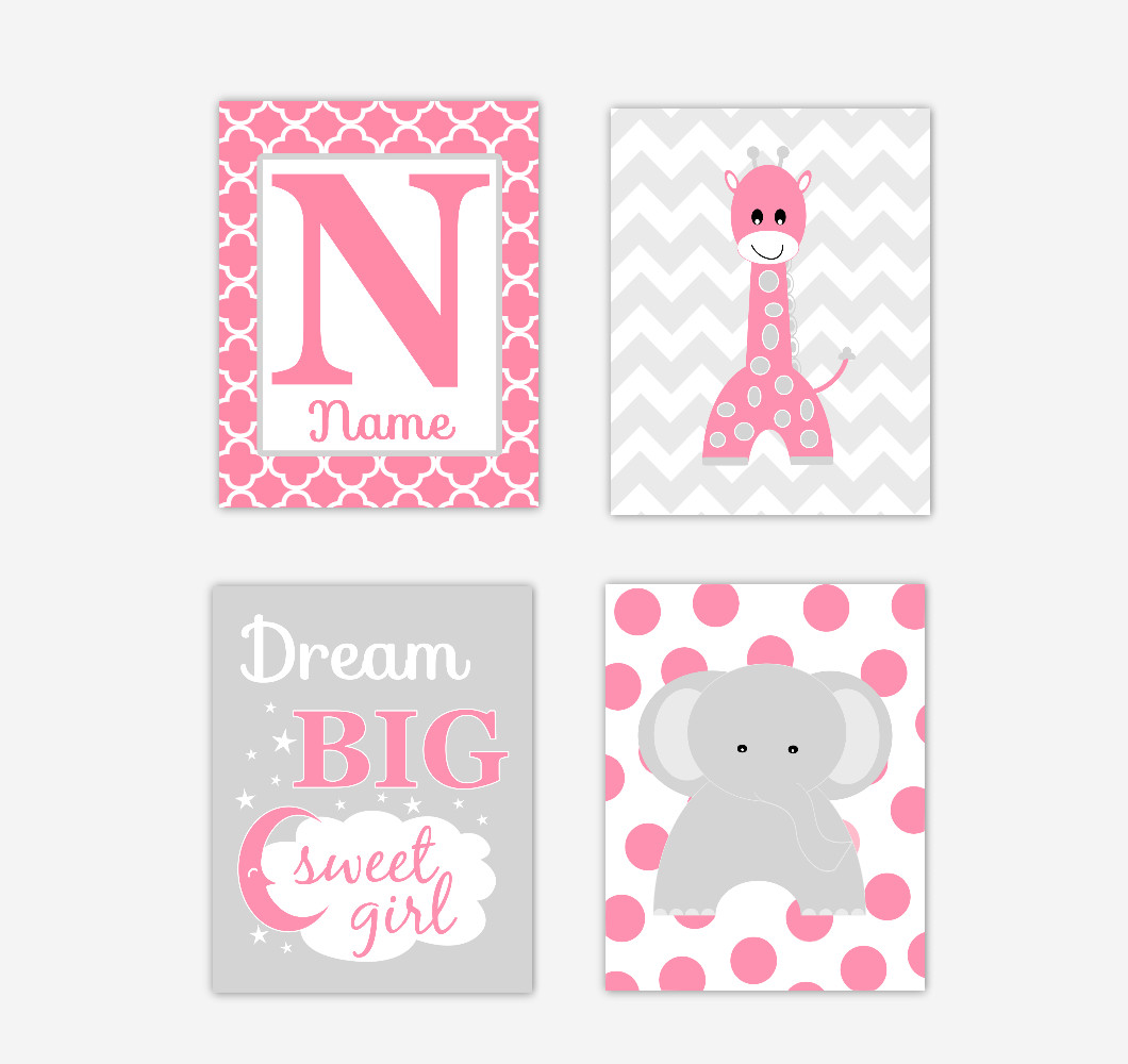 Baby Girl Nursery Wall Art Pink Gray name prints for nursery