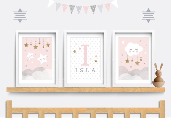 Nursery wall art Set of 3 Star prints name prints for nursery