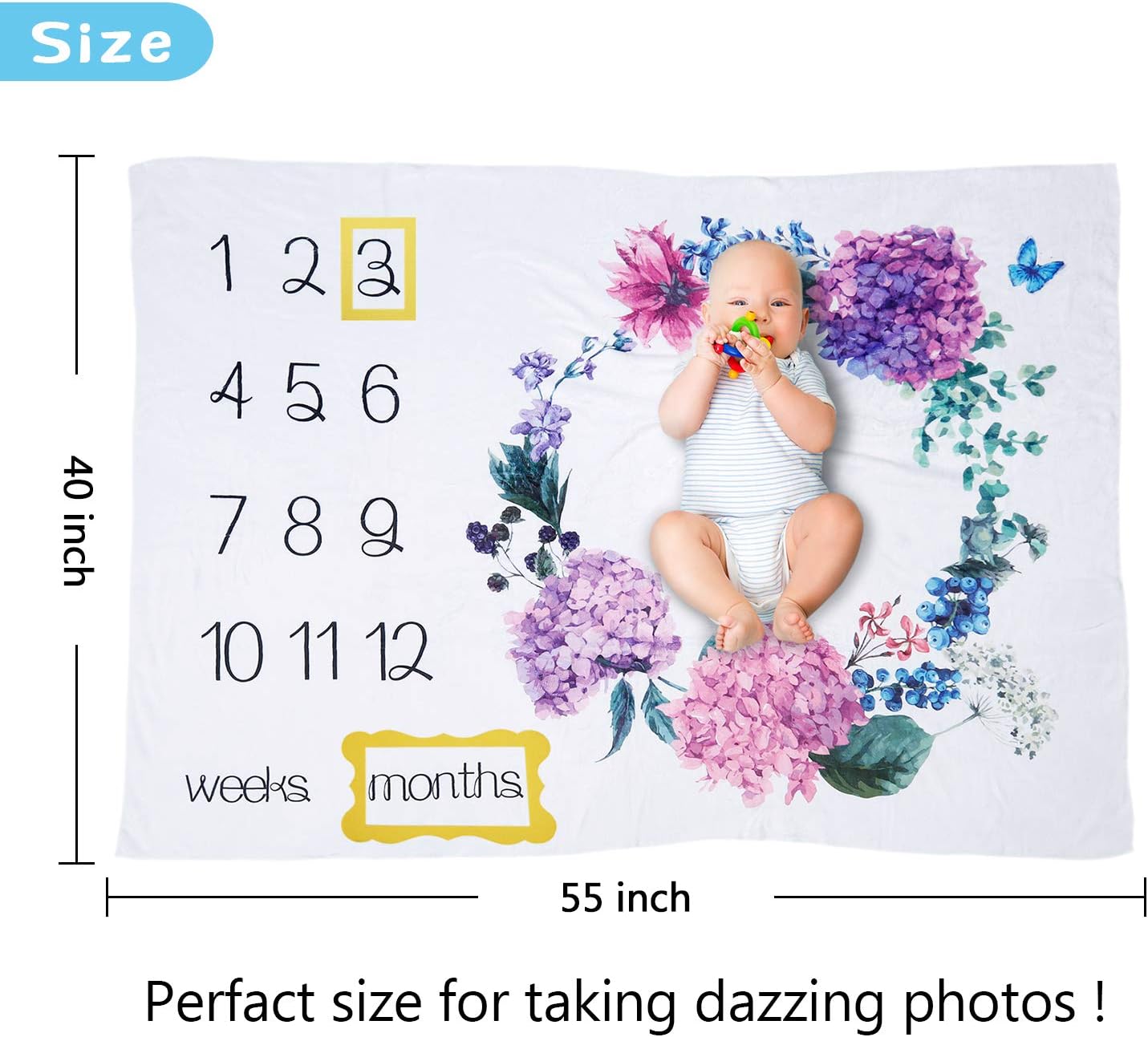 TRENSOM Floral Milestone Blanket Baby best size for milestone blanket
