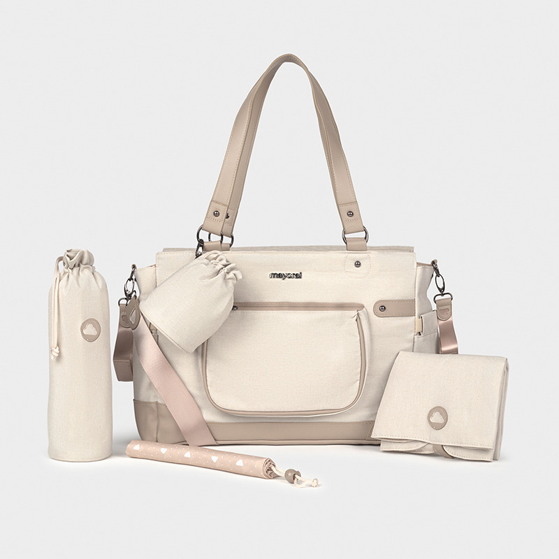 Changing bag with accessories Beige mayoral pram bag