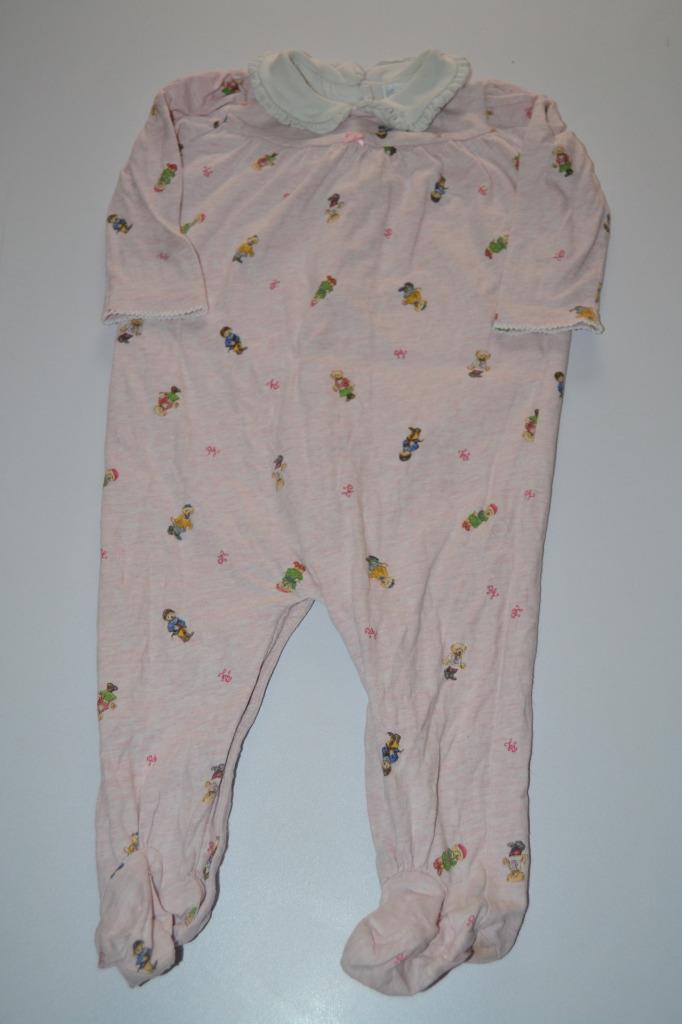 BABY GIRLS PINK ALL OVER BEAR RALPH collared sleepsuit