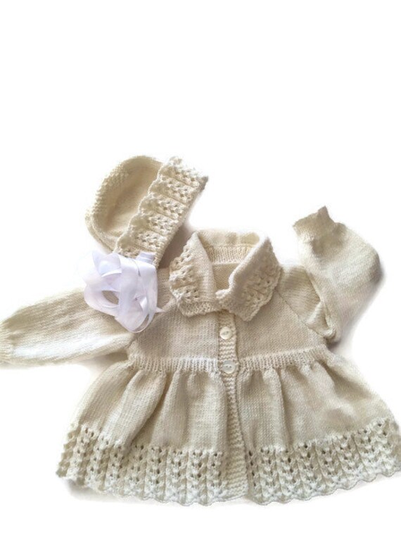 Babys Matinee coat and hat set hand baby coat set