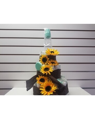 Hello Sunshine Diaper Cake in sunflower diaper cake