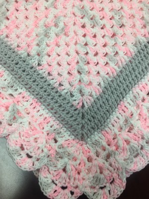 pink grey and white crochet blanket