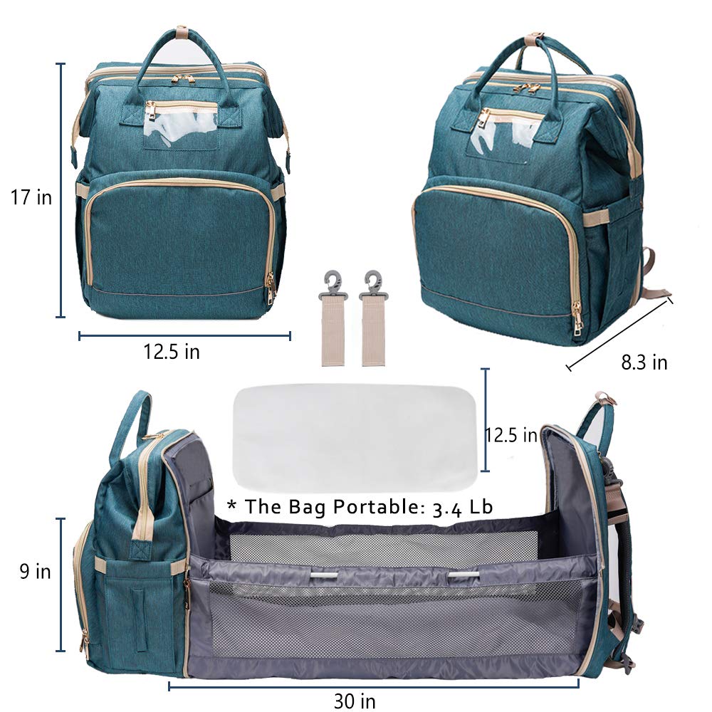 Diaper Bag Backpack with Auto Folding diaper bag with built in bassinet