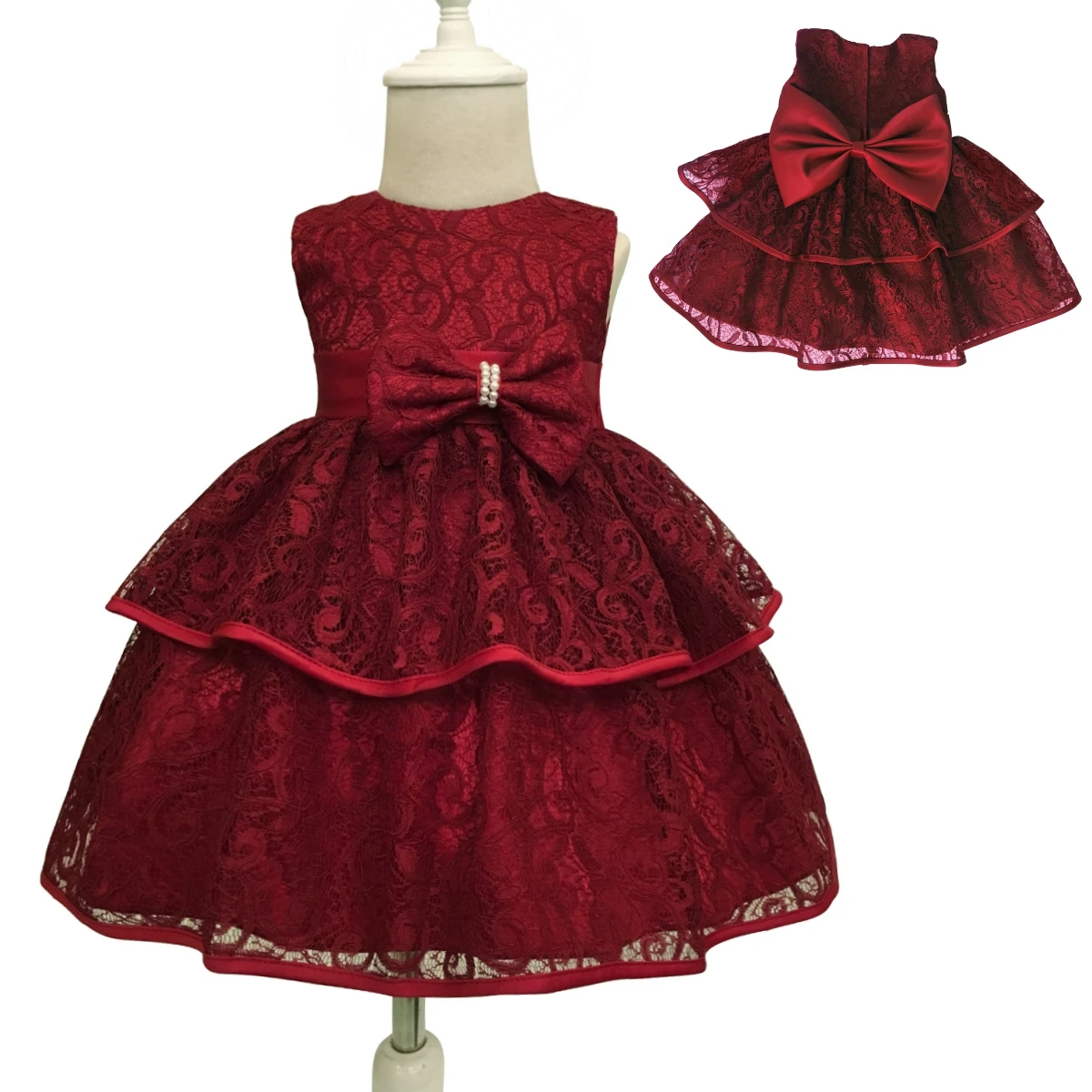 Burgundy Lace Baby Dress