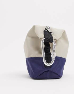 ASOS DESIGN wash bag in beige and navy asos changing bag