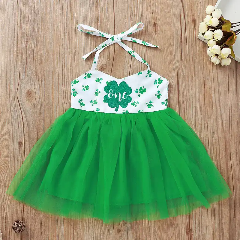 2020 Cute Baby Girls sleeveless Clover green colour dress for baby girl