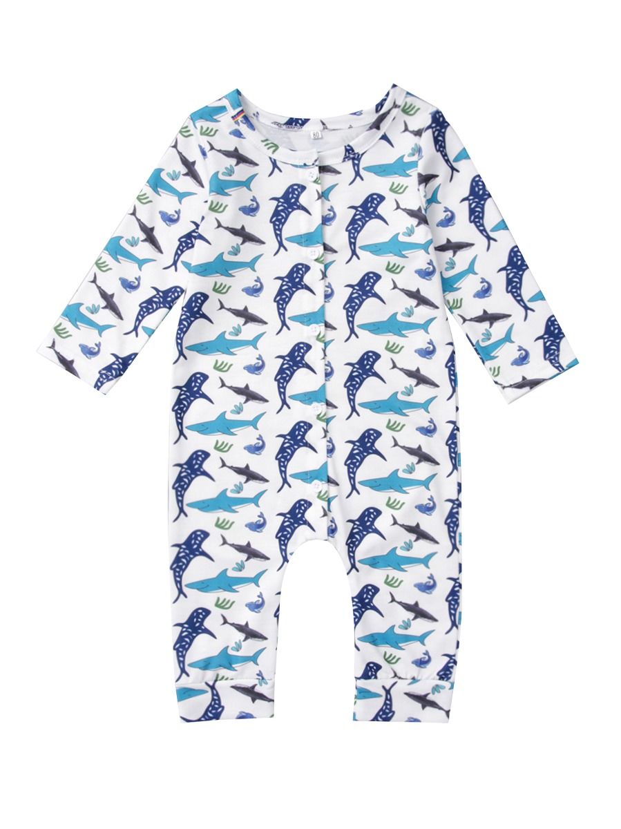 Wholesale Baby Shark Dolphine Buttoned baby shark sleepsuit