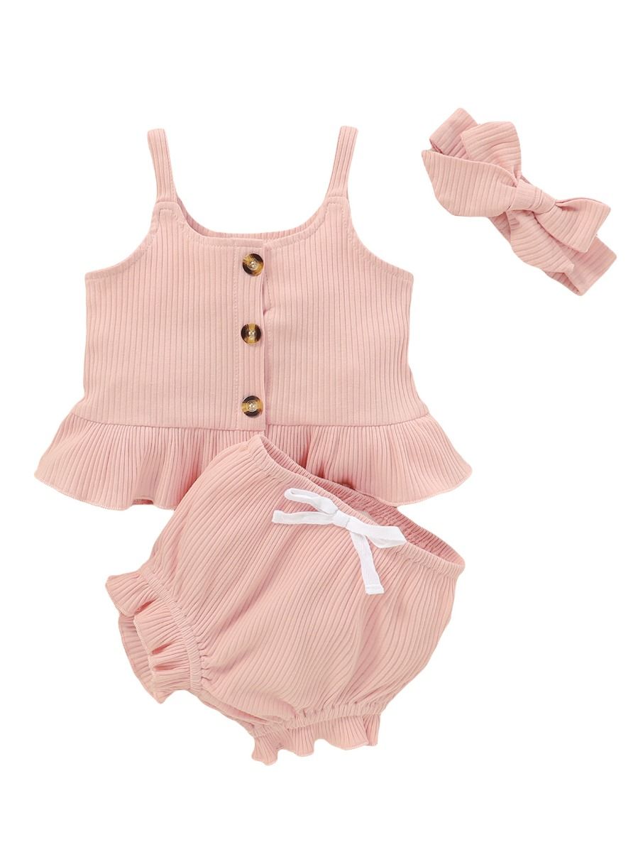 3 Pieces Baby Girl Outfit Ribbed Plain wholesale ribbed baby clothes